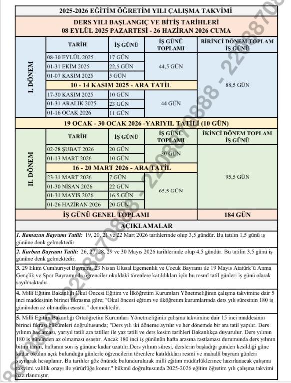 20 Mart 2026 Cuma bayramın 1. günü (ikinci dönem ara tatili)